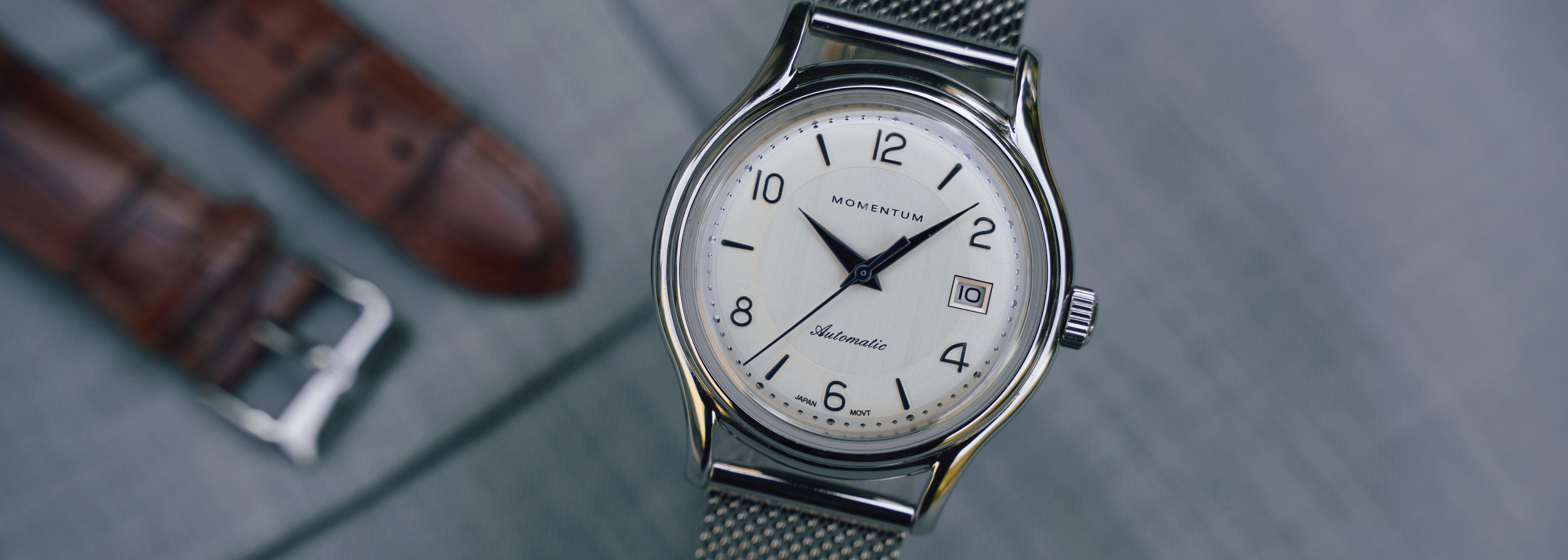 ![Atlas Automatic [38mm] - White Full Lume](http://momentumwatch.com/cdn/shop/products/atlasautowhitebrownleather.webp?v=1761164360&width=1096)