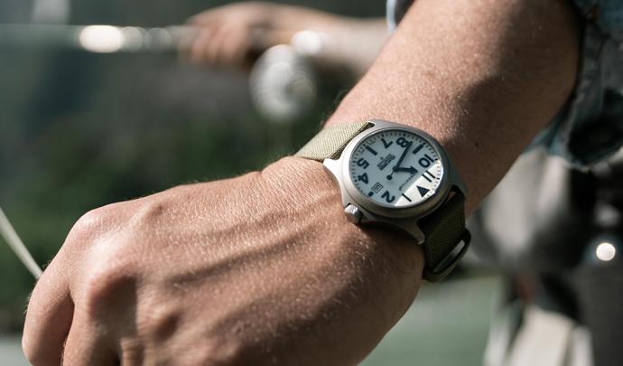 The Atlas is our iconic field watch. A rugged timepiece engineered for maximum legibility and everyday durability. Housed in a light titanium case, it’s tough enough for the trail yet comfortable on the wrist all day long.