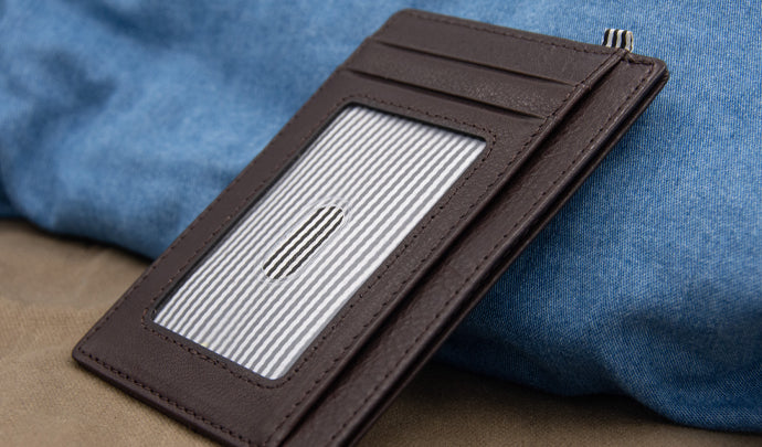 The Flatline Wallet is perfect for front-pocket carry. It is slim but can pack a lot. The Flatline Wallet features 6 card holders (4 open and 2 hidden), RFID protection, clear ID window, and plenty of room for cards or cash. All while it can slip easily into a suit jacket.