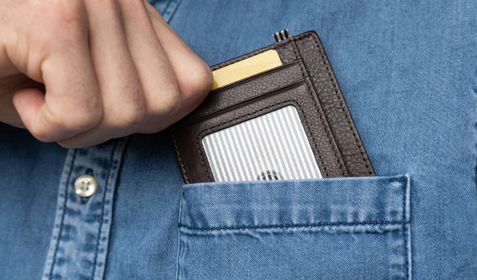 The Flatline Wallet is perfect for front-pocket carry. It is slim but can pack a lot. The Flatline Wallet features 6 card holders (4 open and 2 hidden), RFID protection, clear ID window, and plenty of room for cards or cash. All while it can slip easily into a suit jacket.