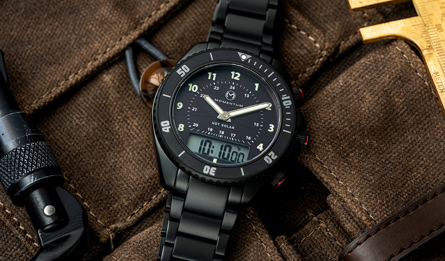 Following in the footsteps of legendary timepieces, the new Momentum UDT embodies the spirit of adventure. Its predecessor, the original Chronosport UDT from the 1980s, rose to fame on the wrists of special-operations forces worldwide. The UDT's rugged functionality was further immortalized by Sylvester Stallone in Rambo, solidifying its reputation as a watch built for action.