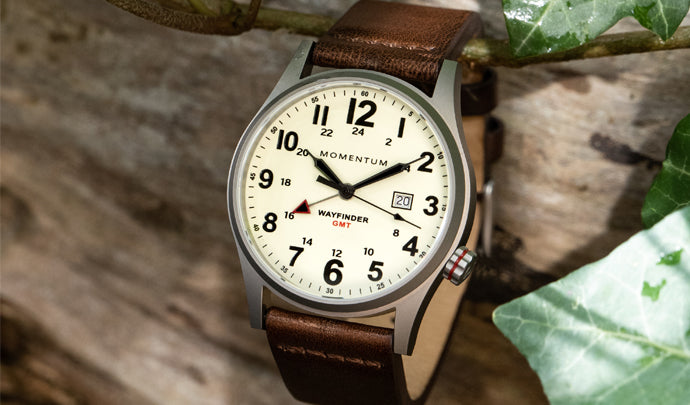![Wayfinder GMT [40mm] - White Full Lume](http://momentumwatch.com/cdn/shop/products/wayfinder-white-brown-bramante.png?v=1692378262&width=1096)